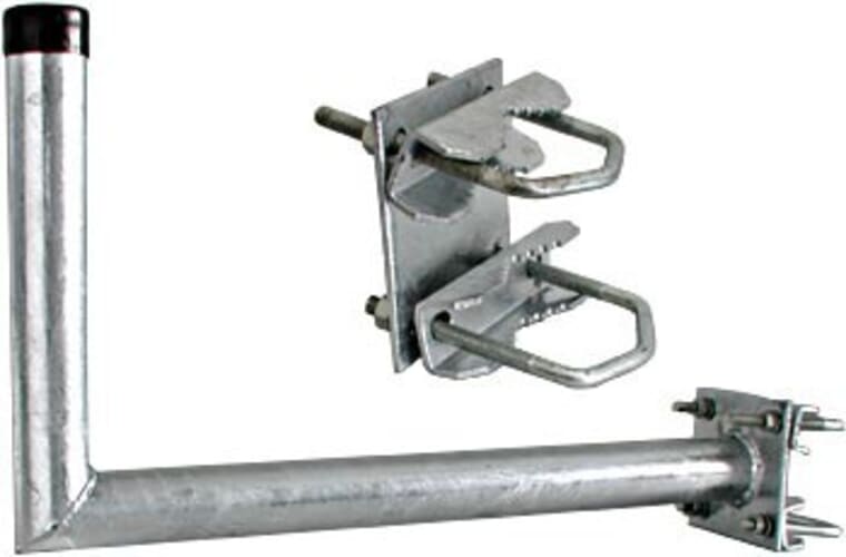 Normal kort lev.tidAltanbeslag ø50x250 mm. for parabol/antenne/kamera. Beslag der er fremstillet med henblik på montering på altaner og andre vanskellige steder. Kan anvendes til montering af såvel parabol som antenne på altangelænder og lignende. Leveres komplet med 2 x clamps. Varmgalvaniseret for maksimal holdbarhed.