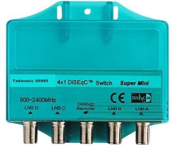 DiSEqC supermini 4-1. High Quality DiSEqC 4-1 Switch "super mini" with semi transparent water protecting housing.