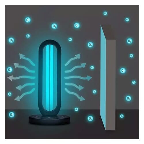 Bacteria and virus-neutralizing lamp 38W with double protection using UV-C light and ozone. UV-C light is an effective reliable solution for the destruction of microorganisms such as viruses, bacteria, yeasts, and fungi which can pose a health risk to all of us. Today, we are aware that health protection is more important to us than ever before. The UV-C lamp is designed to protect the health of you and your surroundings. UV-C radiation disinfects areas up to 40m² in 60 minutes. Wide UVC radiation for disinfection of large areas. With a safety timer, service timer, and remote control.